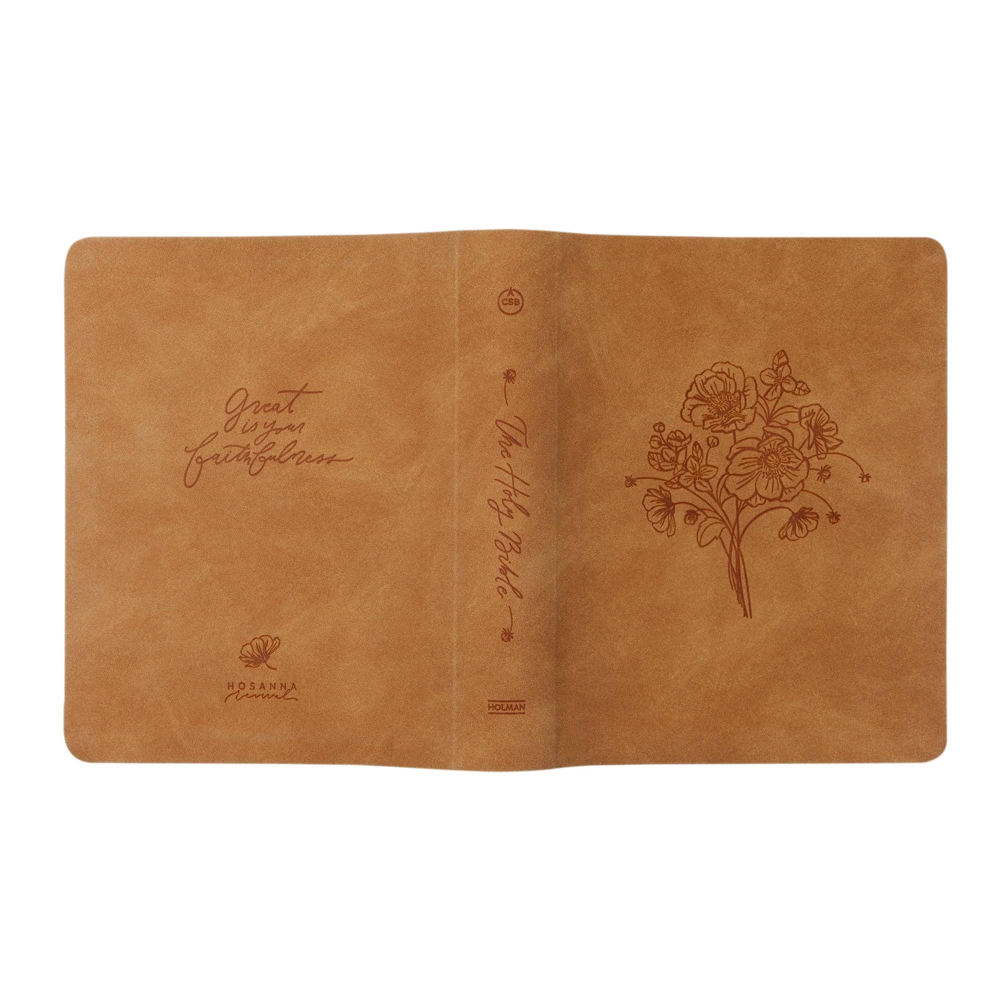 Inspired by the blooming wildflowers in Amelia, West Virginia, this soft brown Bible blends the perfect combination of simplicity with beauty. With the beloved hymn chorus, Great is Your Faithfulness, scripted on the back cover, we are reminded of the truth that grounds us. Our walk with Jesus is dependent on His faithfulness and not our own. As you dive into your faith, may this ring true every day! Product Details - Translation: Christian Standard Bible - Format: flexible leather-like cover - Cream-colored Bible paper - Satin ribbon marker - Smyth-sewn binding - Font size: 8pt - Page count: 1,344 - Dimensions: 8.5” x 6.75” x 1.5” - Weight: 41oz