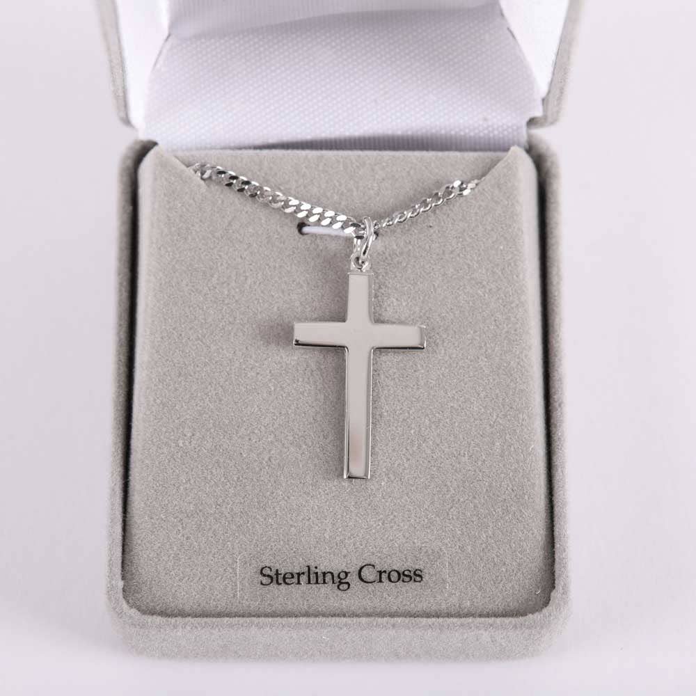 From our Majesty Jewelry Line, this Necklace features a stunning silver cross, bright and shiny with a chain to match. The chain is 24 Inches in length, and features a sturdy lobster clasp fastener that's easy to use. Made of High Quality Sterling Silver. 1-1/8" pendant. The necklace as a whole is lightweight and delicate, meaning it's comfortable to wear, and easy to dress up or down for a variety of occasions. Great for everyday wear and special events. Sterling Silver is a hypoallergenic and nickel free metal, meaning this necklace is safe for all skin types. Beautiful and shiny with quality coating, and won't tarnish or rust easily, making this necklace a beautiful gift that's made to last. Packaged in a soft gray Velour Gift Box, ready to gift! Christmas, birthday, anniversary, valentine's, or just because.