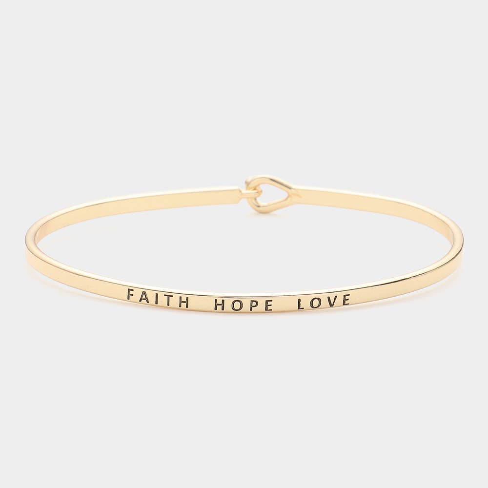 FAITH HOPE LOVE Message Thin Brass Metal Hook Bracelet