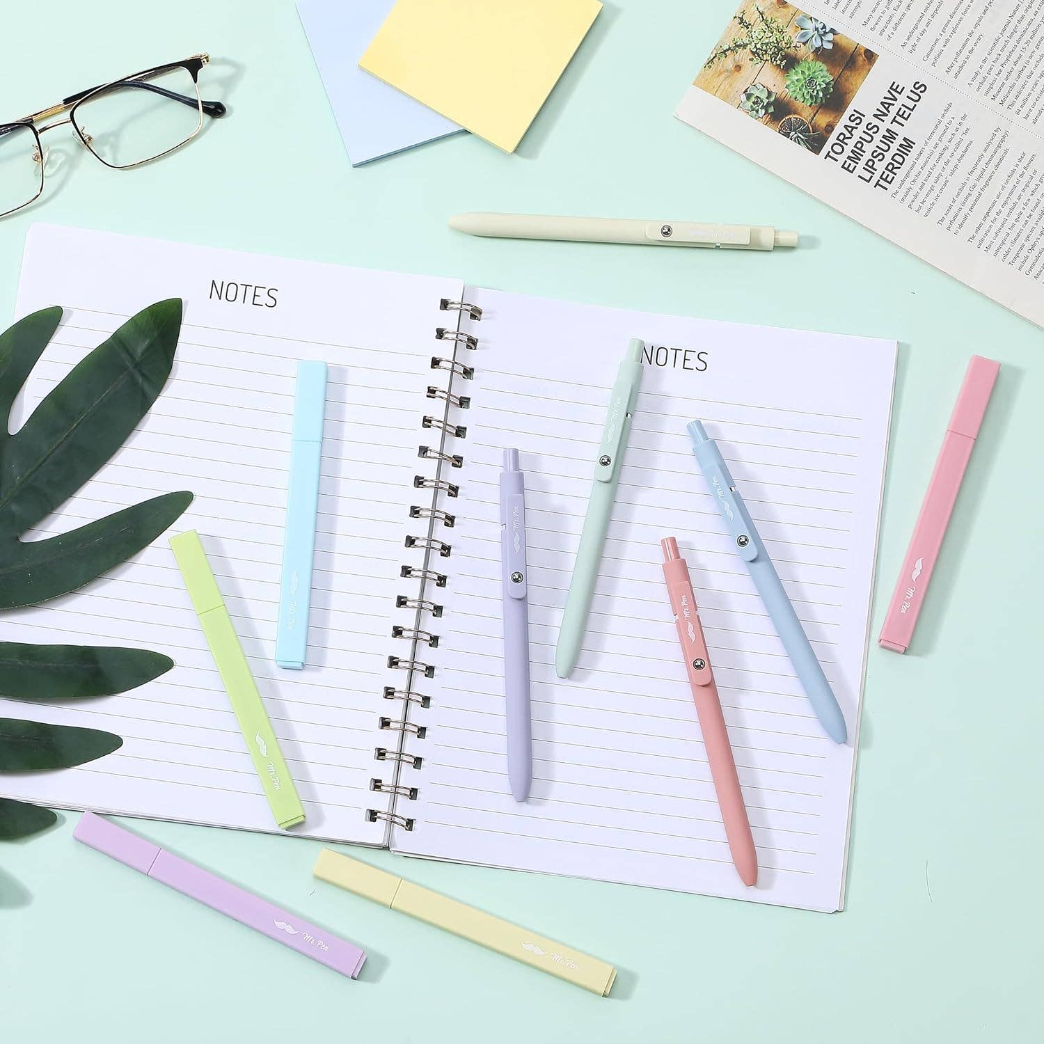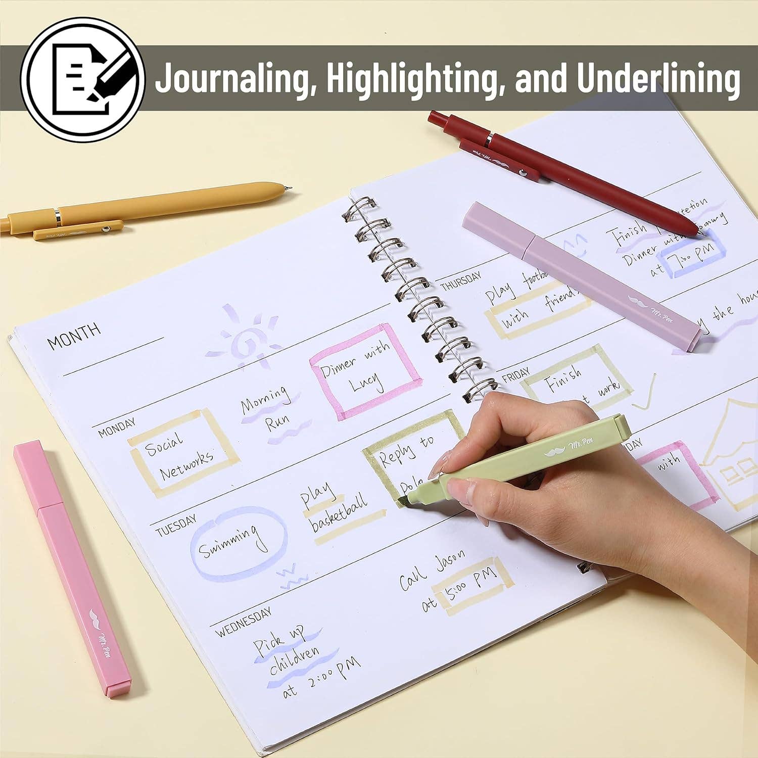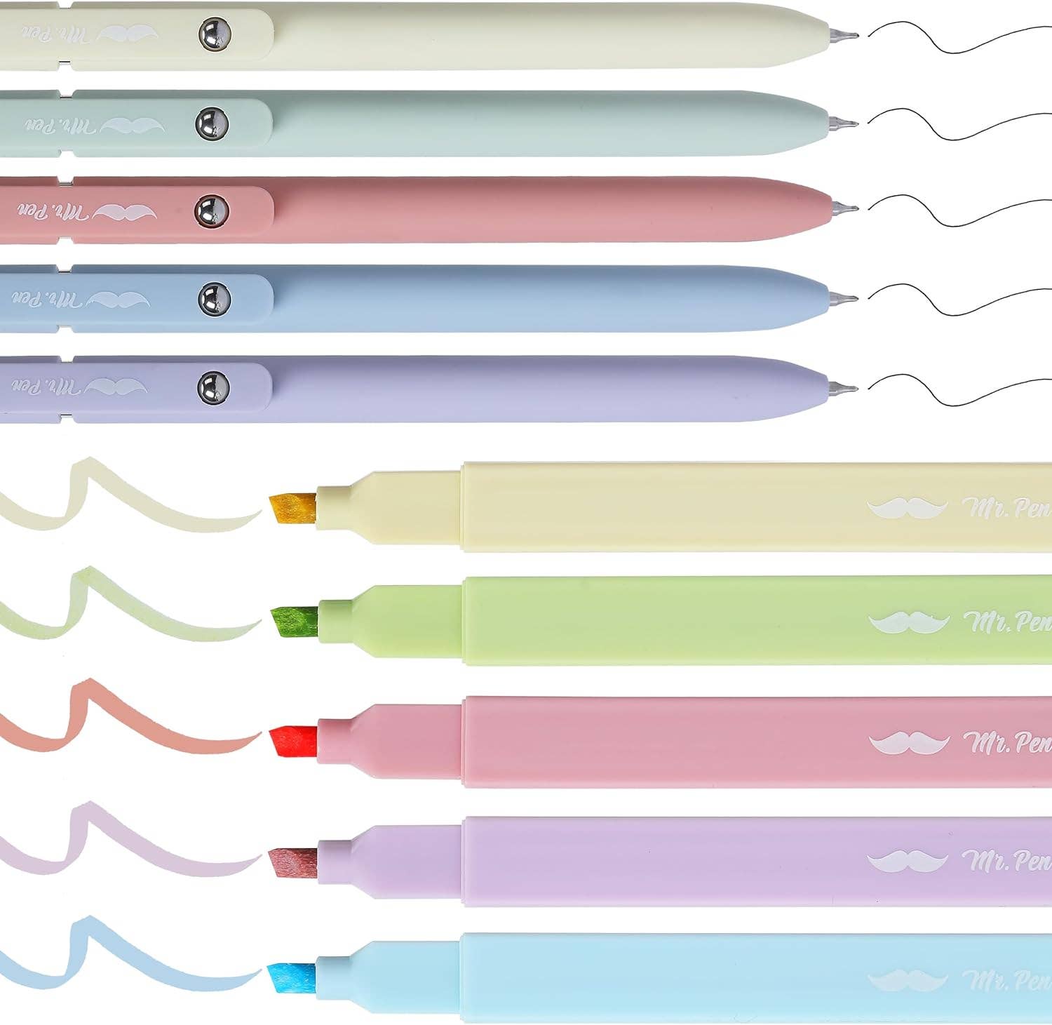 Package includes 5 highlighters in a delightful assortment of non-neon, soft, and mild colors and 5 retractable ballpens in black, offering a versatile and coordinated set for all your writing and highlighting needs. Mr. Pen pens are filled with high-quality water-based ink that flows smoothly on paper. The quick-drying ink ensures smudge-free and clear work, maintaining the neatness of your notes and documents. Our aesthetic highlighters are designed with user comfort in mind, providing a comfortable grip that prevents hand fatigue. The versatile chisel tip efficiently produces both wide and narrow lines, allowing for precise highlighting and underlining. Mr. Pen highlighters are ideal for various applications, including highlighting scriptures, notes, journals, or any books you want to read with vibrant colors. Whether for school, college, home, office, or travel, these highlighters and ball pens are perfect companions for your writing needs.