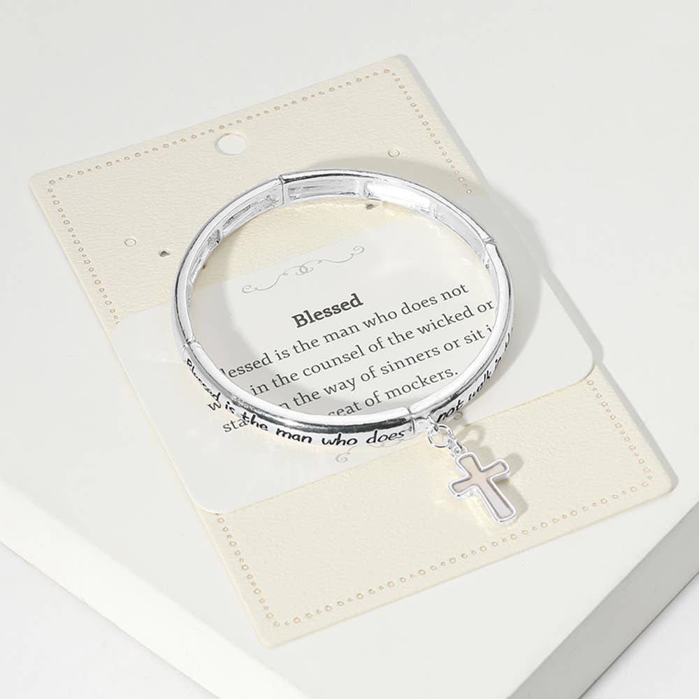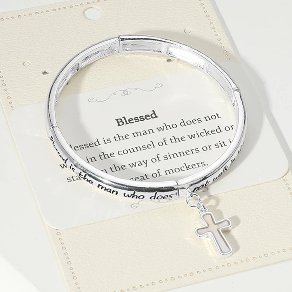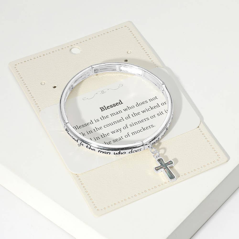 Blessed Message Abalone Cross Charm Stretch Bracelet