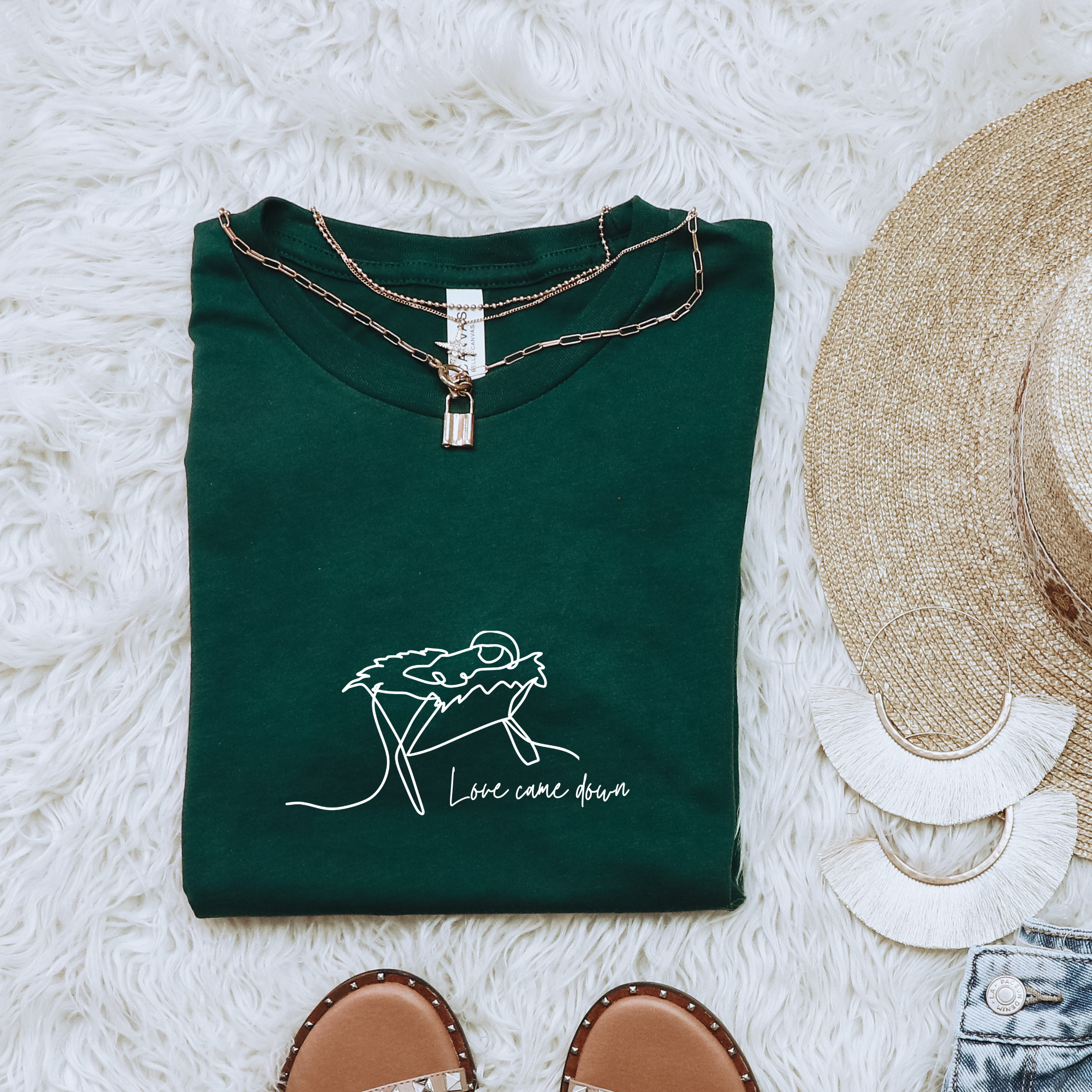 Love Came Down Manger Cute Christian Christmas T-Shirt