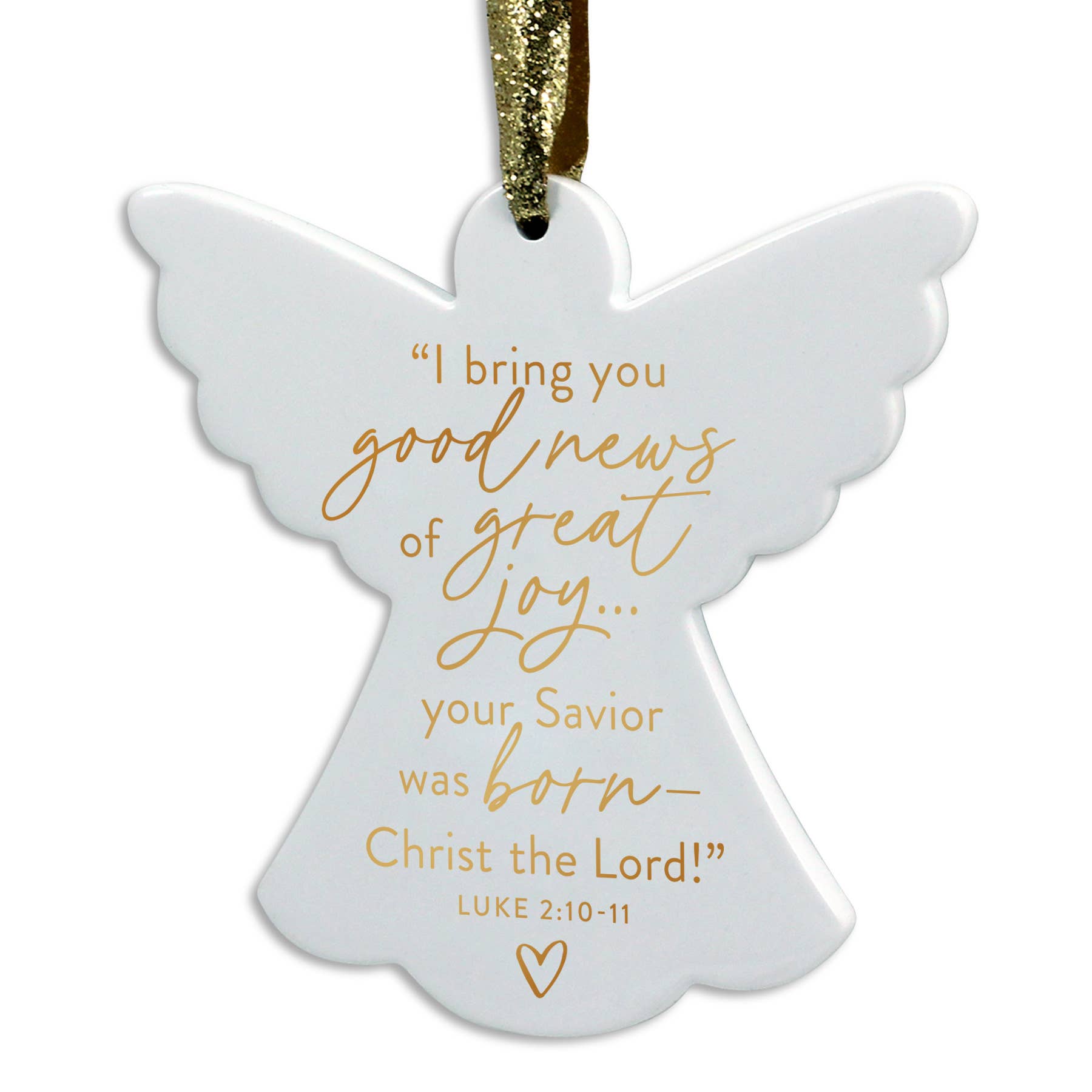 A Beautiful Angel Ornament With Metallic Gold Script To Highlight Your Christmas Tree. May The Christmas Message Remind You Of The Blessings And Joy That The Holiday Season Brings. This Gift Makes A Difference. Through Partnership With The Nonprofit, A Better Life For Kids, Orphans, Children With Special Needs, And Families Are Given Healthy Meals, Clean Water, Safe Housing, And Education Opportunities In Ghana, Africa. Material: Resin. Size: 3.75 X 3.75 In