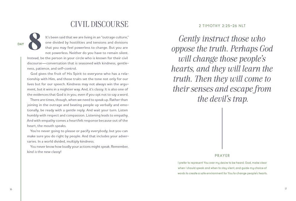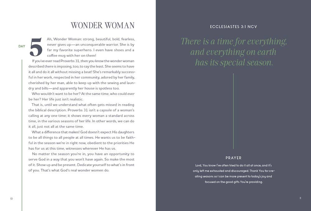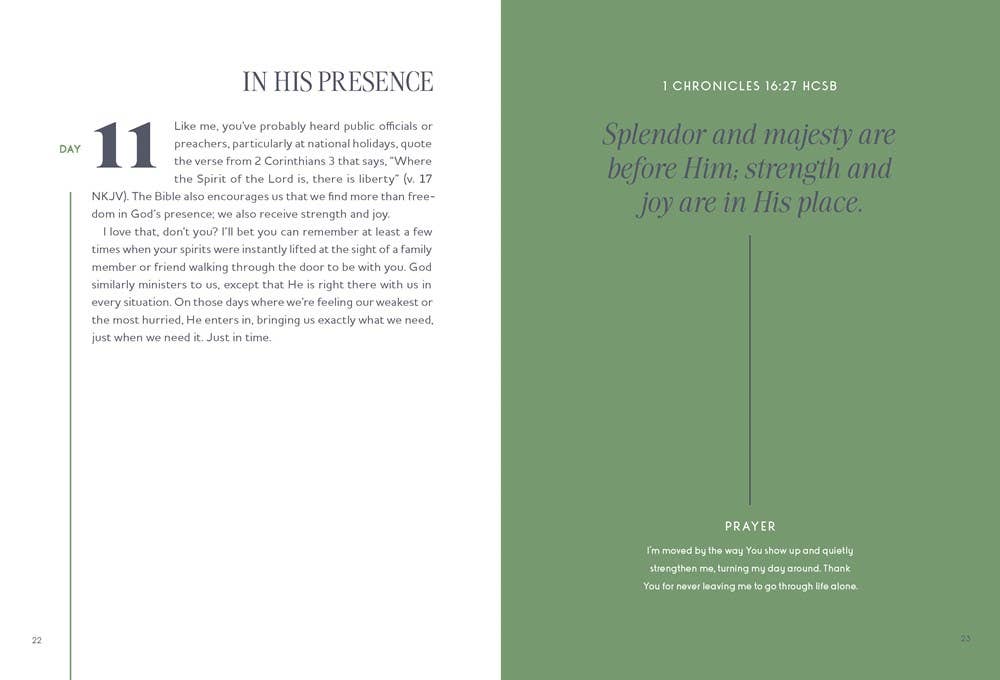 Each entry in this 100-day devotional gives you the chance to pause, reflect, and explore how you can press into the joy and strength God makes available to us all each day. Each daily entry includes: