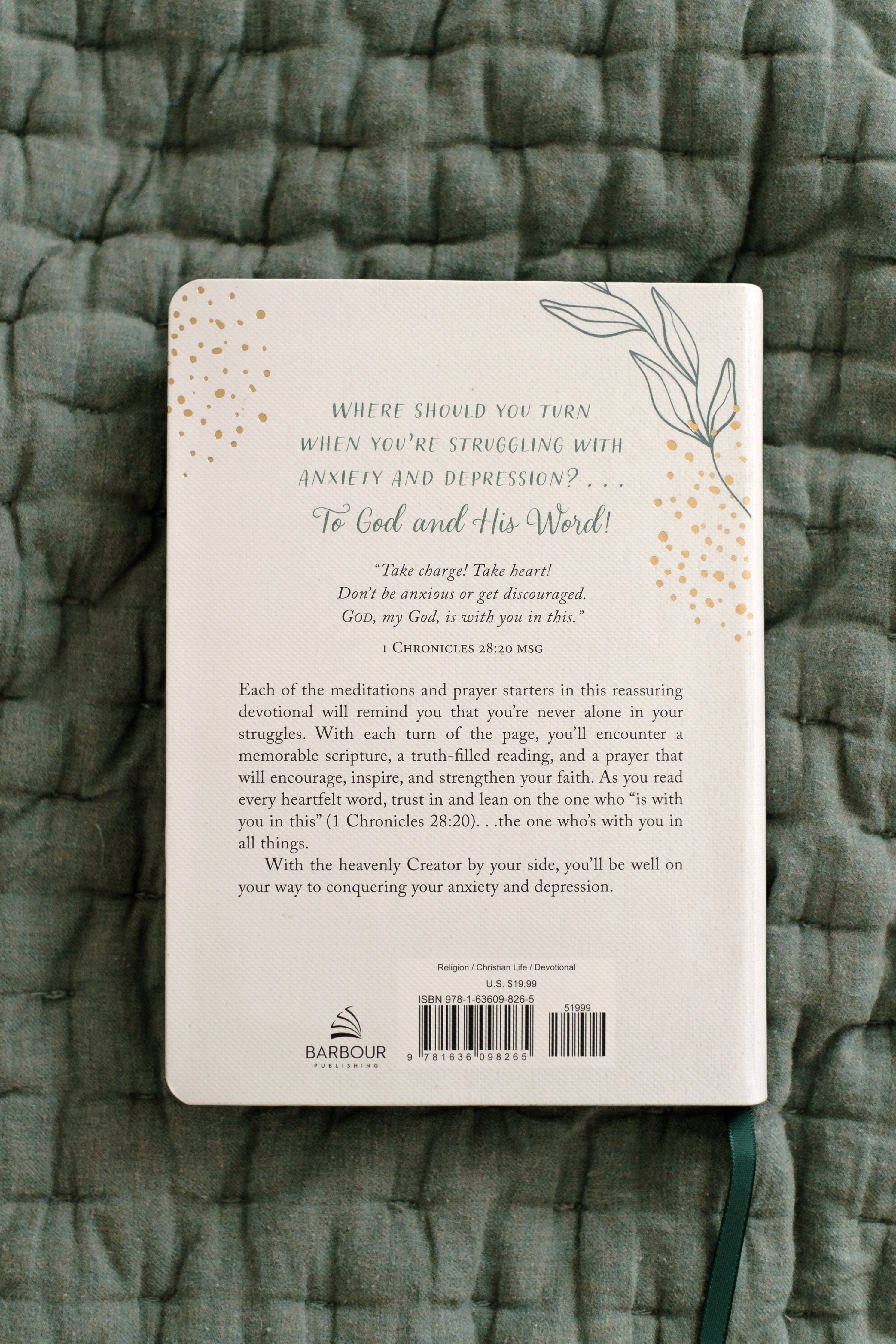 Where should you turn when you're struggling with anxiety and depression? . . . To God and His Word! Each of the meditations and prayer starters in this reassuring daily devotional will remind you that you're never alone in your struggles. With each turn of the page, you'll encounter a memorable scripture, a truth-filled reading, and a prayer that promise to encourage, inspire, and strengthen your faith. As you read every heartfelt word, trust in and lean on the one who "is with you in this" (1 Chronicles 28:20). . .the one who's with you in all things. With the heavenly Creator by your side, you'll be well on your way to conquering your anxiety and depression.