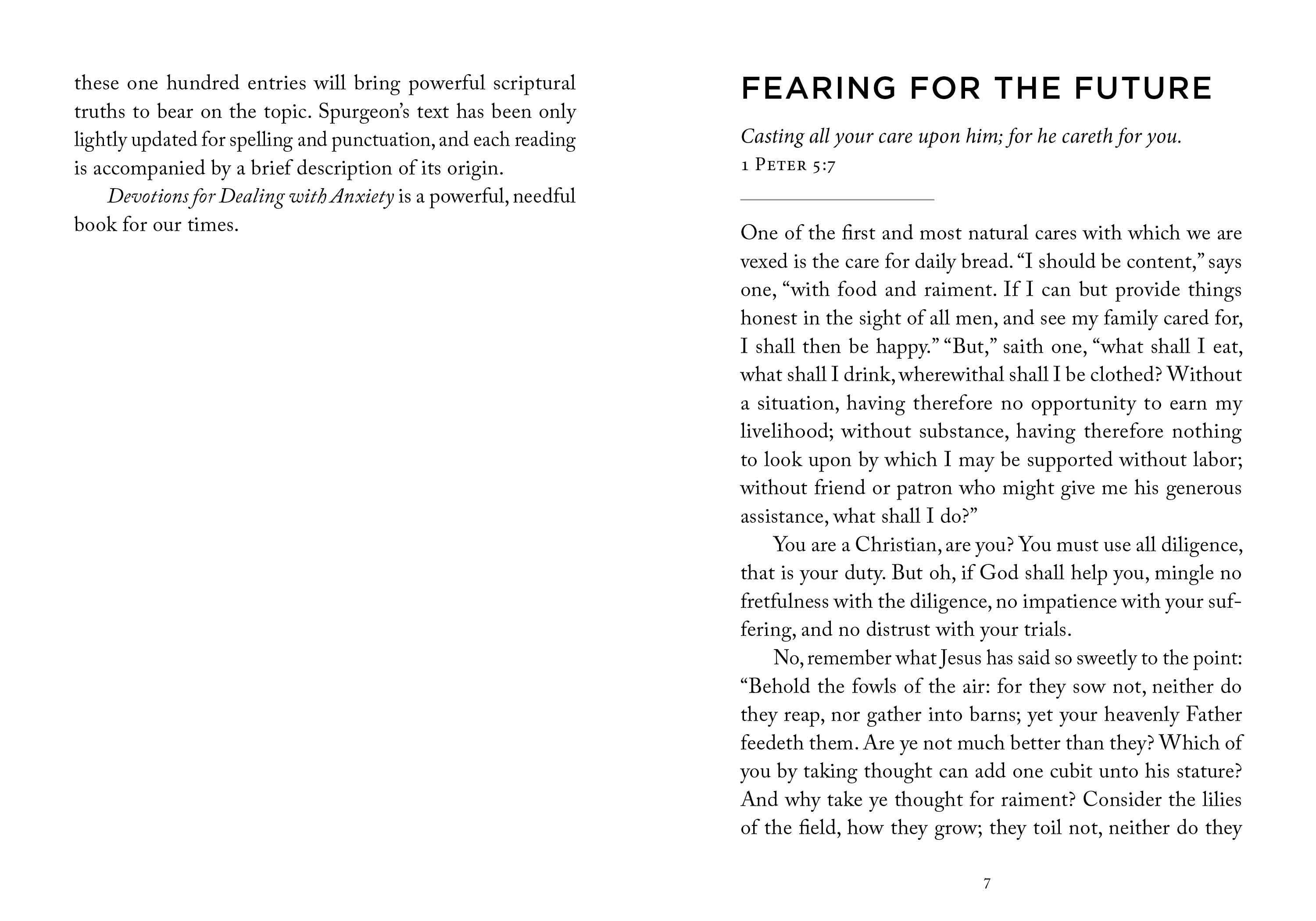 Even in anxiety, there is hope. Here is deep yet accessible encouragement from one of history’s greatest preachers. Charles Spurgeon, “the Prince of Preachers,” is well remembered and remarkably readable some 130 years after his death. This brand-new devotional on the topic of anxiety is compiled from his decades of weekly sermons. You’ll find spiritually deep but personally accessible teaching on this contemporary issue as Spurgeon distills godly principles especially for younger men. Readings discuss the sources, impact, and management of anxiety These 100 entries are each accompanied by a brief description of the origin of the reading. Devotions for Dealing with Anxiety is a powerful book for our times.