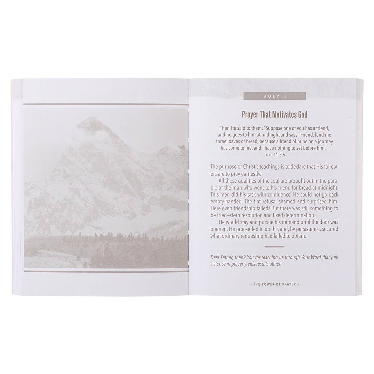 Take a year to revive your prayer life when you study The Power of Prayer Brown Softcover One-Minute Devotions devotional book. Gold-toned and brown reflective lake cover design, Gold-foiled title, Softcover, One-color interior, 366 devotions, 400 pages, Size: 5.4" x 4.3" x 0.8" (137 x 109 x 20mm)