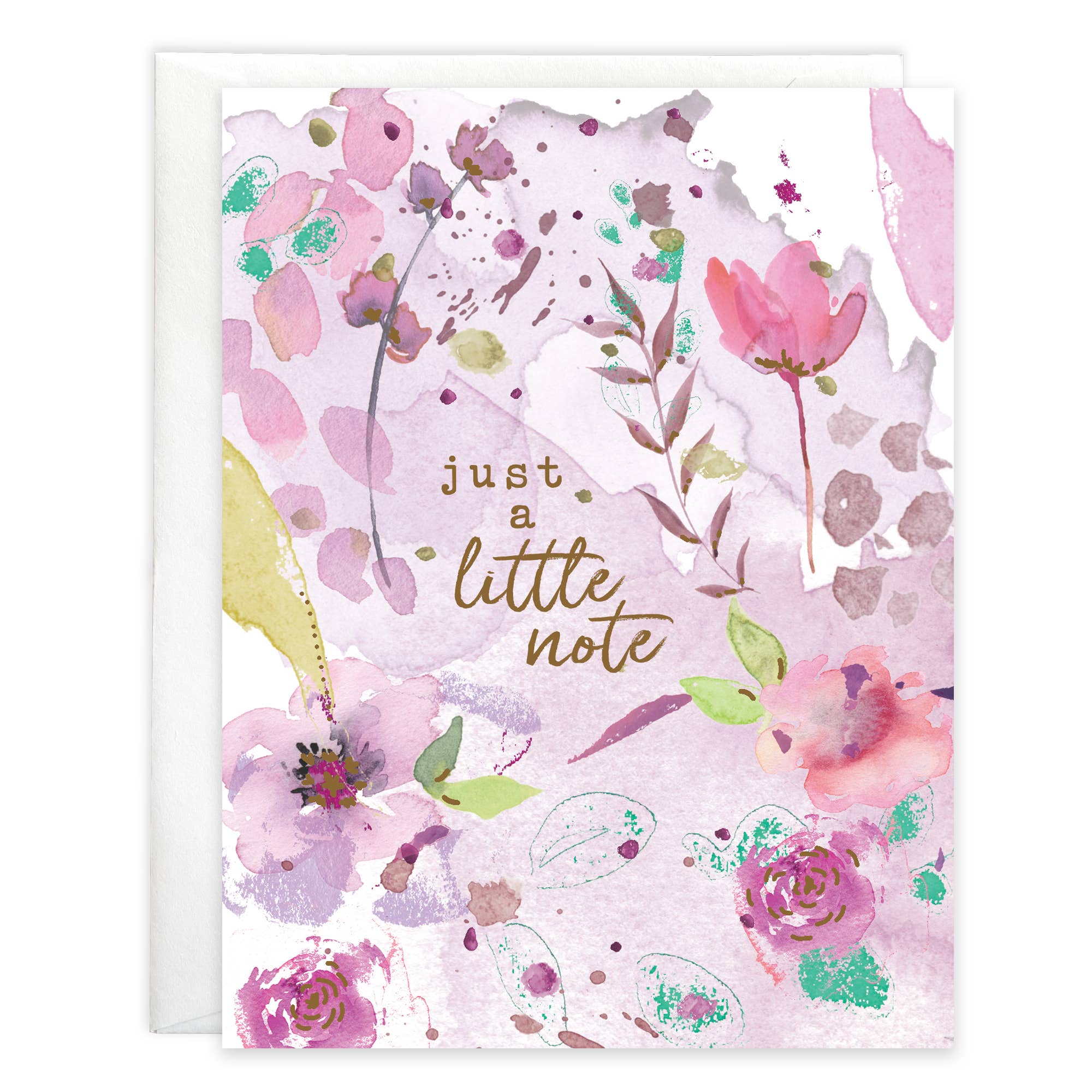 Greeting card with Envelope. Just a little note... ...to let you know I'm thinking of you Art by Amylee Weeks, MHS Licensing Embellished with gold foil Folded size: 4.25" x 5.5" (A2). Proudly made in the U.S.A.