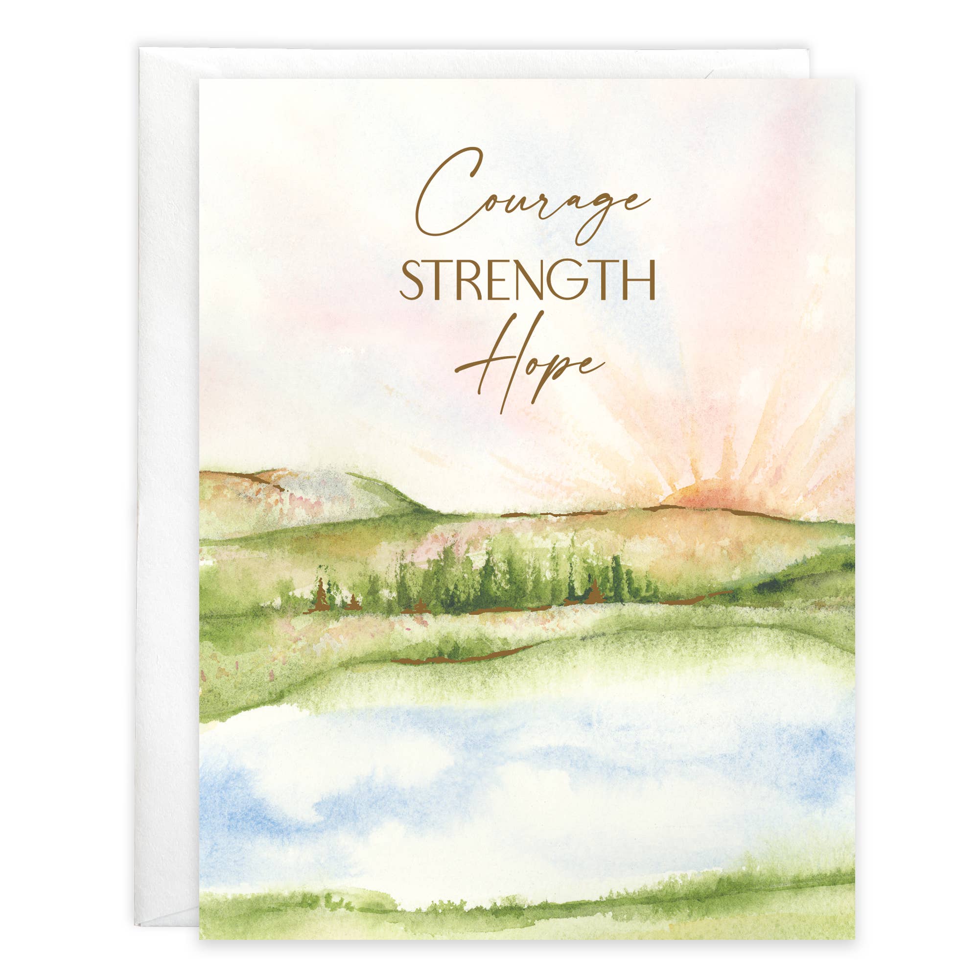 Greeting card with envelope Courage Strength Hope Thinking of you Embellished with gold foil Folded size: 4.25" x 5.5" (A2) Proudly made in the U.S.A.