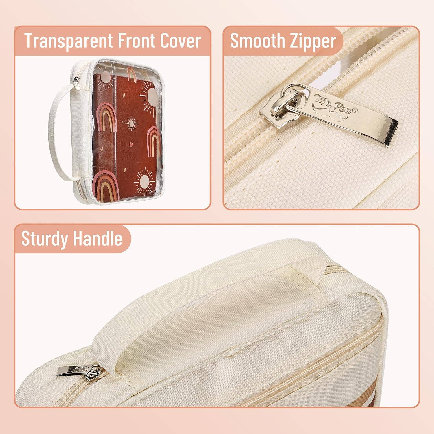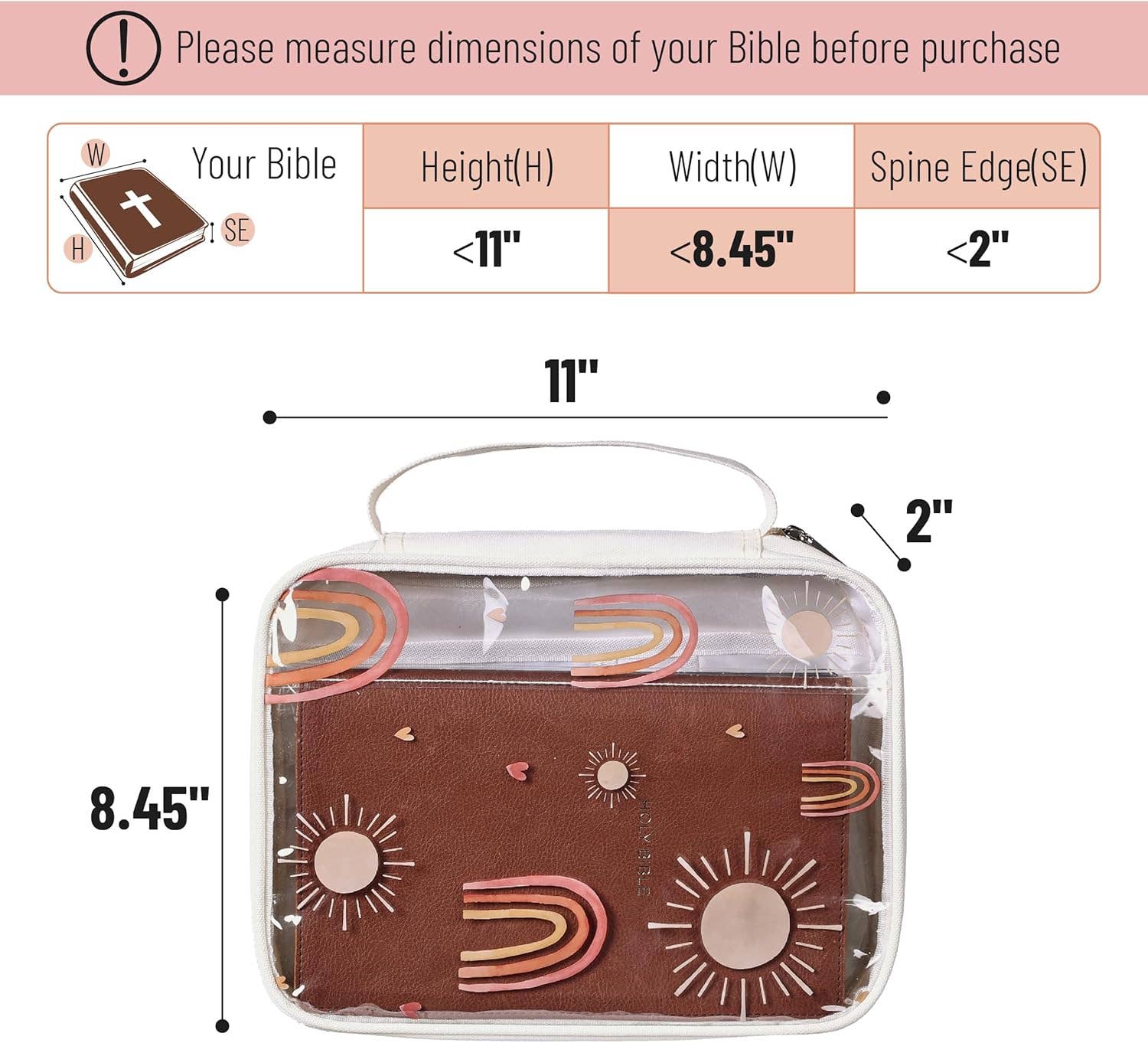 Mr. Pen clear Bible cover is designed to protect and organize your Bible, featuring a transparent front cover with a cheerful rainbow and sun pattern, adding a touch of whimsy to your daily devotionals. This cover is made from high-quality, durable materials that ensure long-lasting protection for your Bible against dust, spills, and wear, keeping it in pristine condition. The spacious interior includes multiple pockets for storing pens, highlighters, notes, and other study materials, making it easy to keep everything you need for Bible study in one place. A sturdy zipper closure secures the cover, preventing your Bible and accessories from falling out, while the convenient handle allows for easy carrying to church, study groups, or on the go. The cover fits most standard-sized Bibles, providing a snug and secure fit that enhances the overall look and functionality of your Bible, making it a perfect gift for friends, family, or yourself.